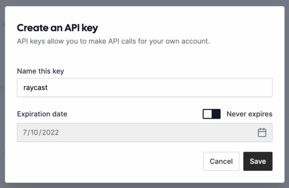 Quickly share your Cal.com meeting links with Raycast. Requires Raycast.com to be installed and the Cal.com from the Raycast Store needs to be installed: https://www.raycast.com/cal/. You can create an API token in your Developer Cal.com Settings, and then you can add the API Key by opening up the Cal.com App in Raycast.